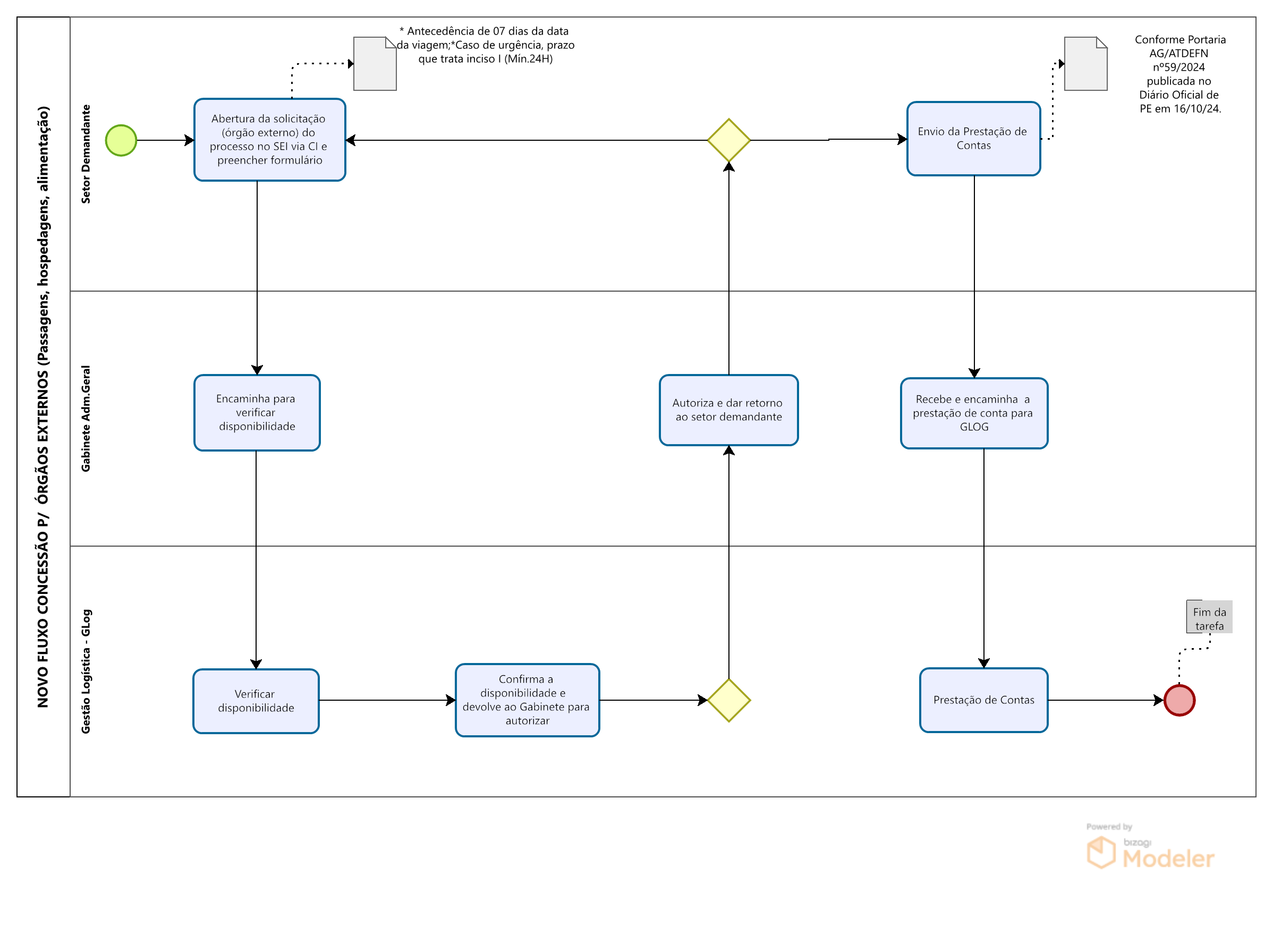 Fluxo de Concessão de passagens, hospedagens e alimentação aos Órgãos externos