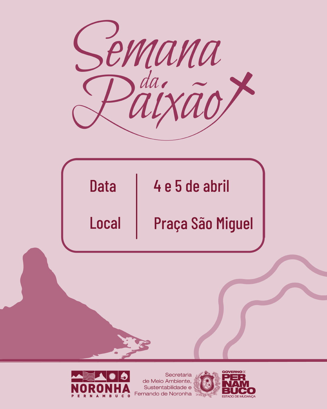 Este ano, a Semana Santa em Fernando de Noronha ganha um novo atrativo. Inspirada em polos tradicionais do continente, como Fazenda Nova e Gravatá, a Administração da Ilha, por meio da Superintendência de Turismo, Cultura e Esportes, lança a 1ª edição da Semana da Paixão. O evento promete transformar a noite da Praça de São Miguel, na Vila dos Remédios, em um ponto de encontro entre moradores e turistas nos dias 4 e 5 de abril.